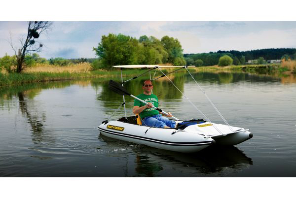 Відмінно підходить для риболовлі наодинці чи полювання. Завдяки розмірам і чудовій прохідності маленького катамарана, можна забратися в найвіддаленіші або важкодоступні місця. Місця всередині цілком достатньо навіть для дорослої людини: 125 см у довжину і майже 90 см використовуваної ширини.